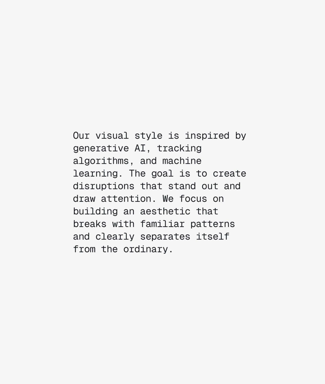 The agency explores themes like generative AI, algorithms, and machine learning to build identities that feel experimental, precise, and forward-looking.