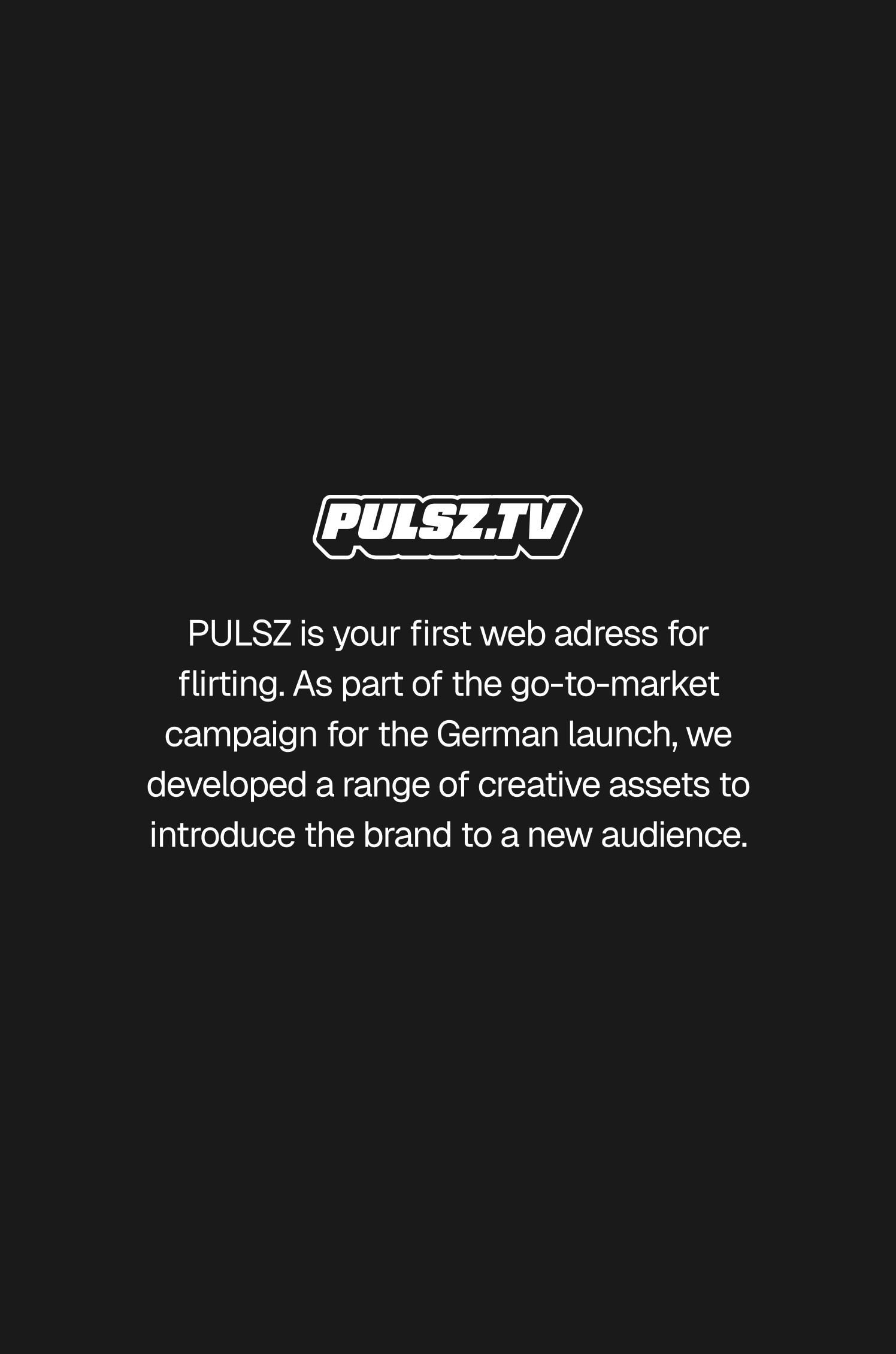 PULSZ is your first web adress for flirting. As part of the go-to-market campaign for the German launch, we developed a range of creative assets to introduce the brand to a new audience.